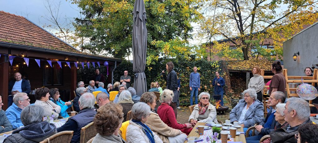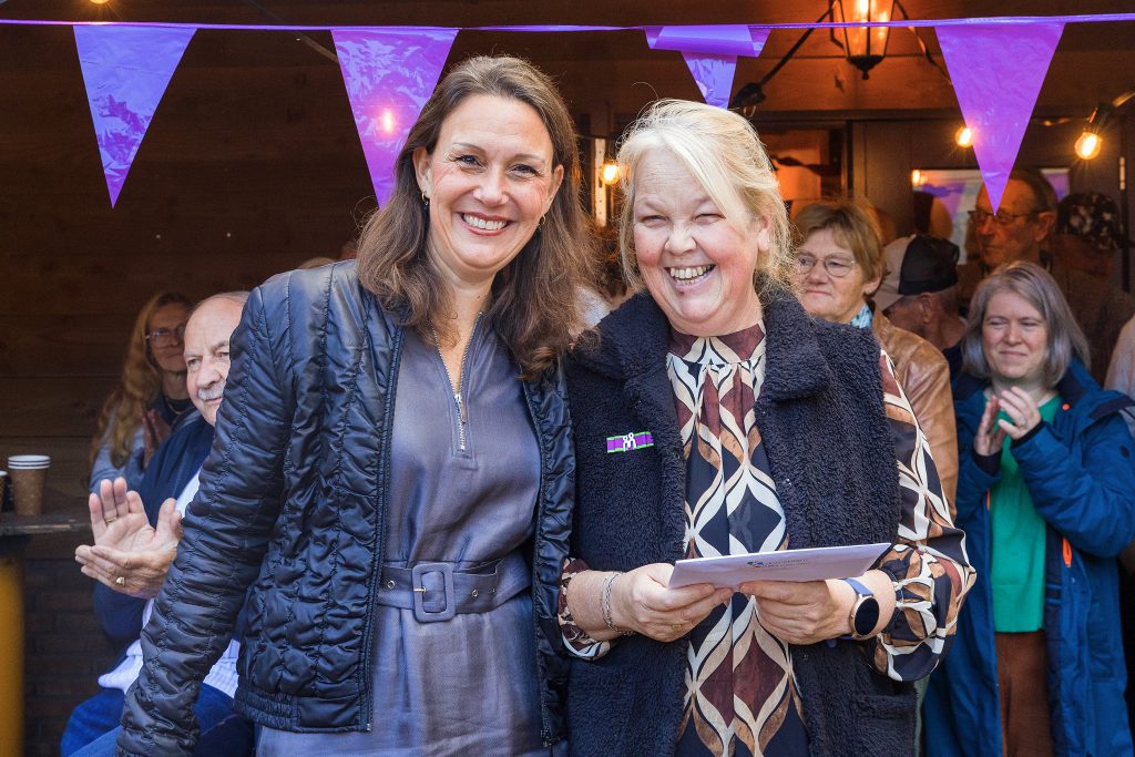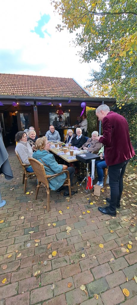 Het terras was sfeervol aangekleed met bloemen, vlaggetjes en zonnebloemen. Bij een kop koffie, thee of warme chocolademelk met slagroom was er ruimte voor ontmoeting en ontspanning. Wethouder Judith van Loon opende de middag met een persoonlijk woord van dank: “Normaal heb ik voor dit soort gelegenheden een speech voorbereid, maar dat is vanmiddag niet nodig. Ik spreek vanuit mijn hart, omdat ik het zo bijzonder vind wat jullie voor een naaste betekenen.” Tijdens de middag werd ook aandacht besteed aan lokale initiatieven zoals Effe Buurten en het ANWB Automaatje, die inwoners helpen om met elkaar in contact te blijven en actief deel te nemen aan het dorpsleven.